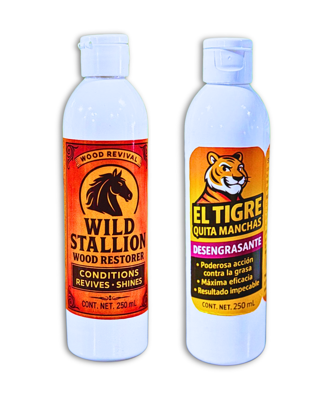 Desengrasante El Tigre + Wild Stallion Restaurador de Madera (250 mL c/u)