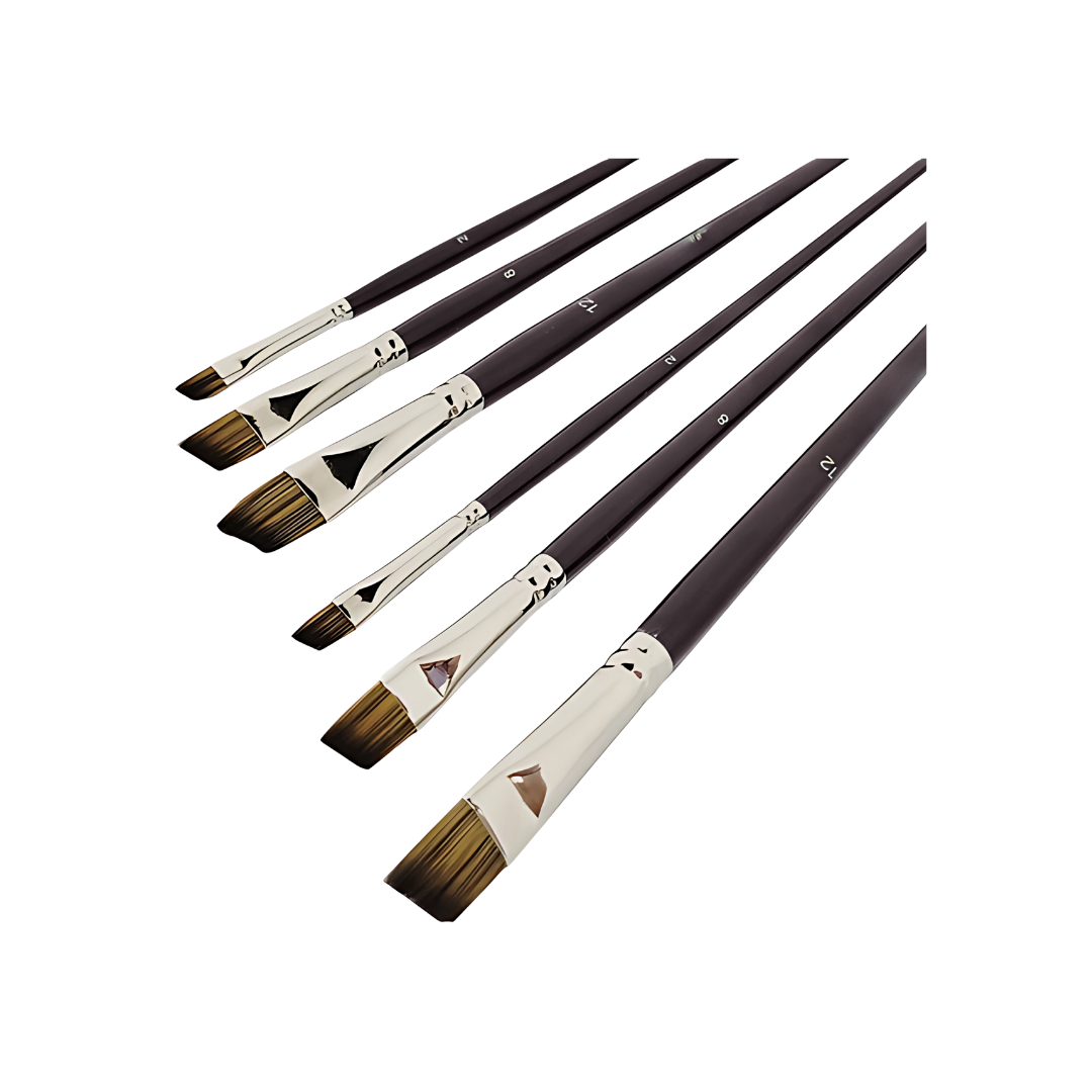 Este set de pinceles angulares permiten realizar trazos inclinados y detalles decorativos en diferentes técnicas de pintura. Su diseño facilita crear líneas definidas y efectos especiales en trabajos artísticos.