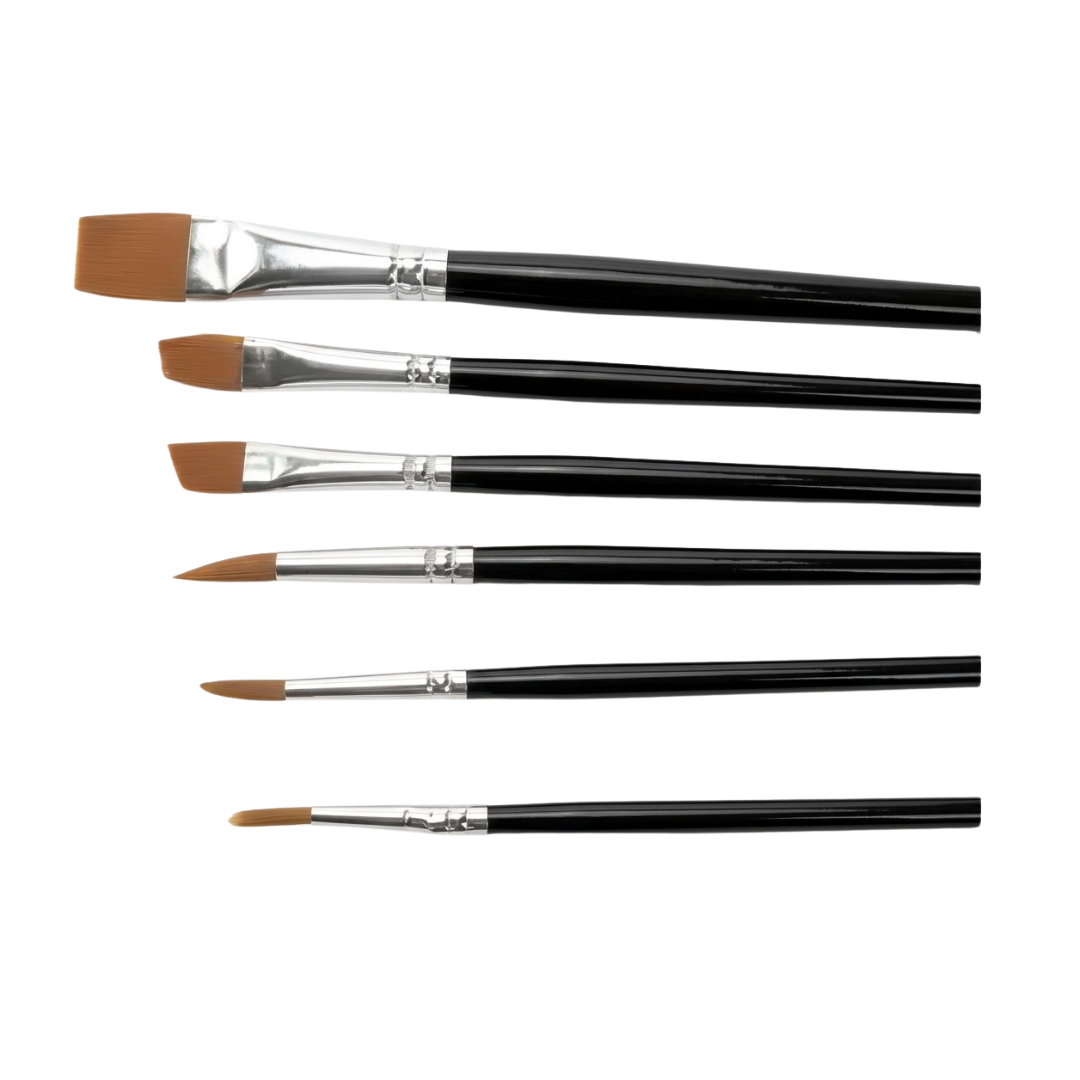 Contiene 6 pinceles ideales para trazos finos, rellenos y detalles en proyectos artísticos y manualidades.