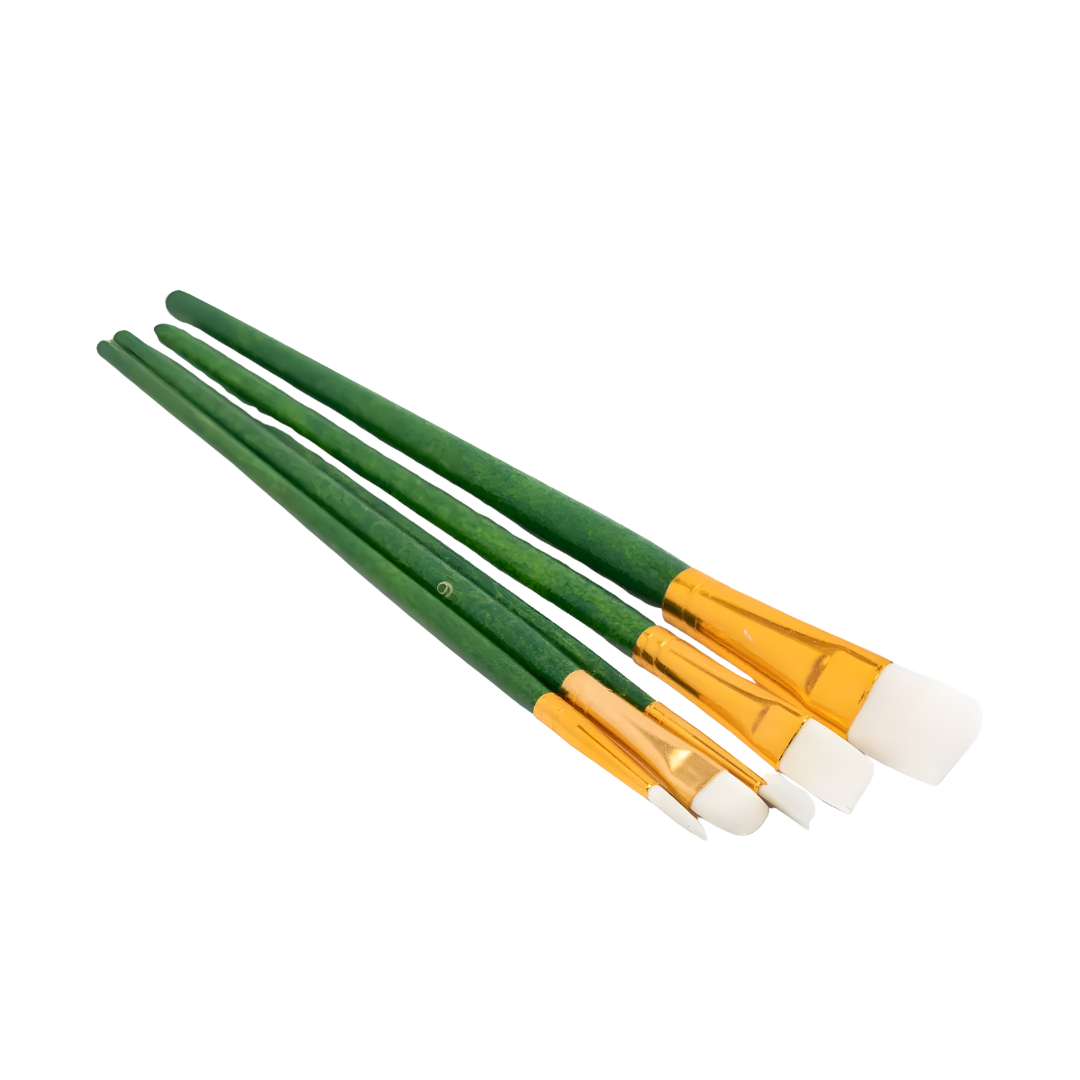 Set de 5 pinceles surtidos en estuche protector. Diseñados para distintas técnicas de pintura escolar.