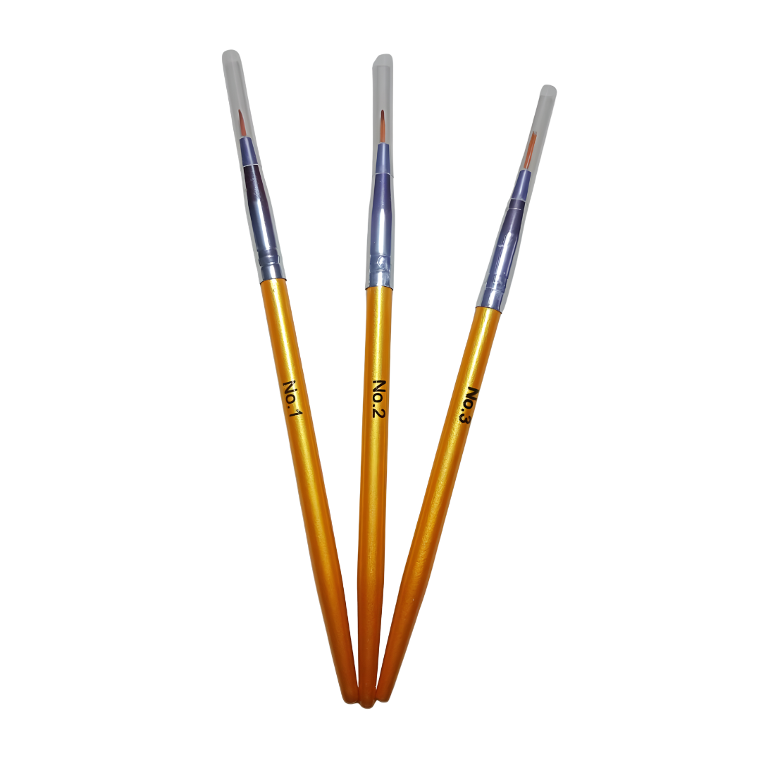 Set de 3 pinceles tipo liner diseñados para líneas finas y detalles precisos.