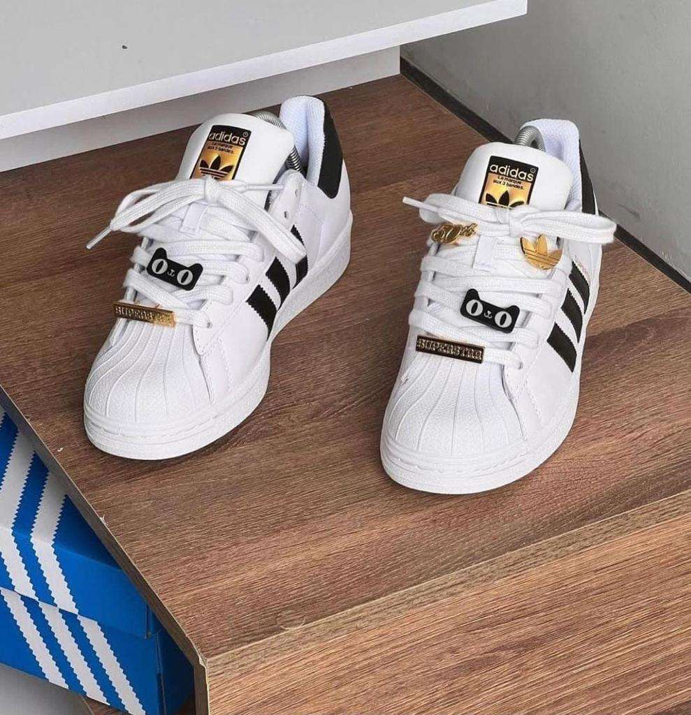 Las Adidas Superstar blancas son uno de los tenis más icónicos y versátiles de la marca Adidas. Su diseño clásico combina una parte superior en cuero blanco con las tres franjas características y la famosa puntera de goma tipo “shell toe”, que brinda estilo y resistencia. Son cómodas, fáciles de combinar con cualquier outfit y perfectas para uso diario, convirtiéndose en un básico de la moda urbana. 👟✨