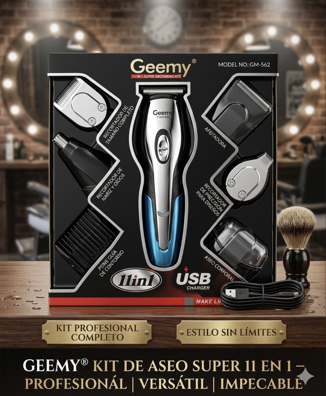 Afeitadora recargable versátil con 11 accesorios intercambiables para lograr diferentes tipos de corte. Diseñada especialmente para hombres, ofrece precisión en barba, cabello y detalles. Batería de larga duración, cuchillas afiladas y ergonomía cómoda para un afeitado profesional en casa. Ideal para mantener tu estilo con facilidad y rapidez.