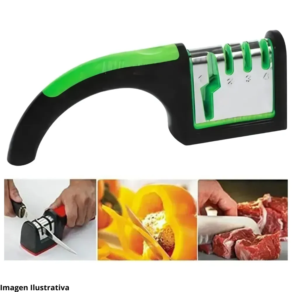 Práctico afilador con 3 niveles de afilado que ayuda a recuperar el filo de tus cuchillos de forma rápida y segura. 🥕🍖