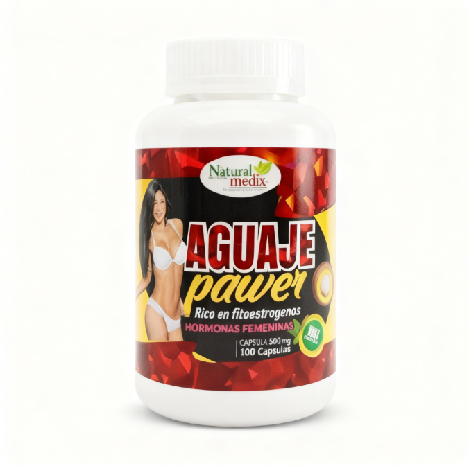 Aguaje Pawer es un suplemento en cápsulas formulado con extracto de aguaje, reconocido por su alto contenido de fitoestrógenos naturales, ideales para apoyar el desarrollo y la armonía del cuerpo femenino.