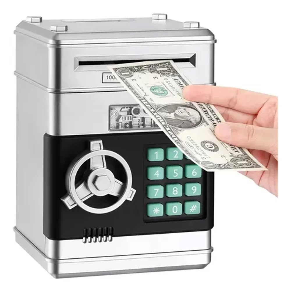 Guarda tu dinero de forma segura con esta práctica alcancía tipo caja fuerte, ideal para fomentar el hábito del ahorro en niños y adultos. Su diseño resistente brinda mayor protección para monedas y billetes, combinando funcionalidad y seguridad en un solo producto.