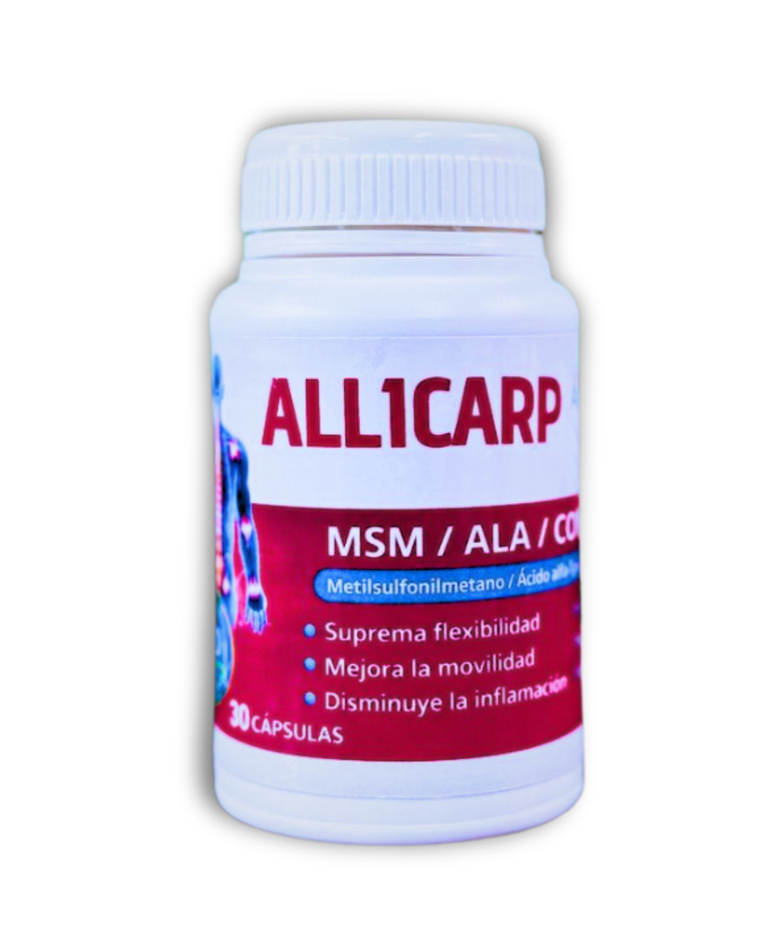 ALL1CARP es un suplemento formulado especialmente para brindar apoyo a las articulaciones, ligamentos y movilidad diaria.