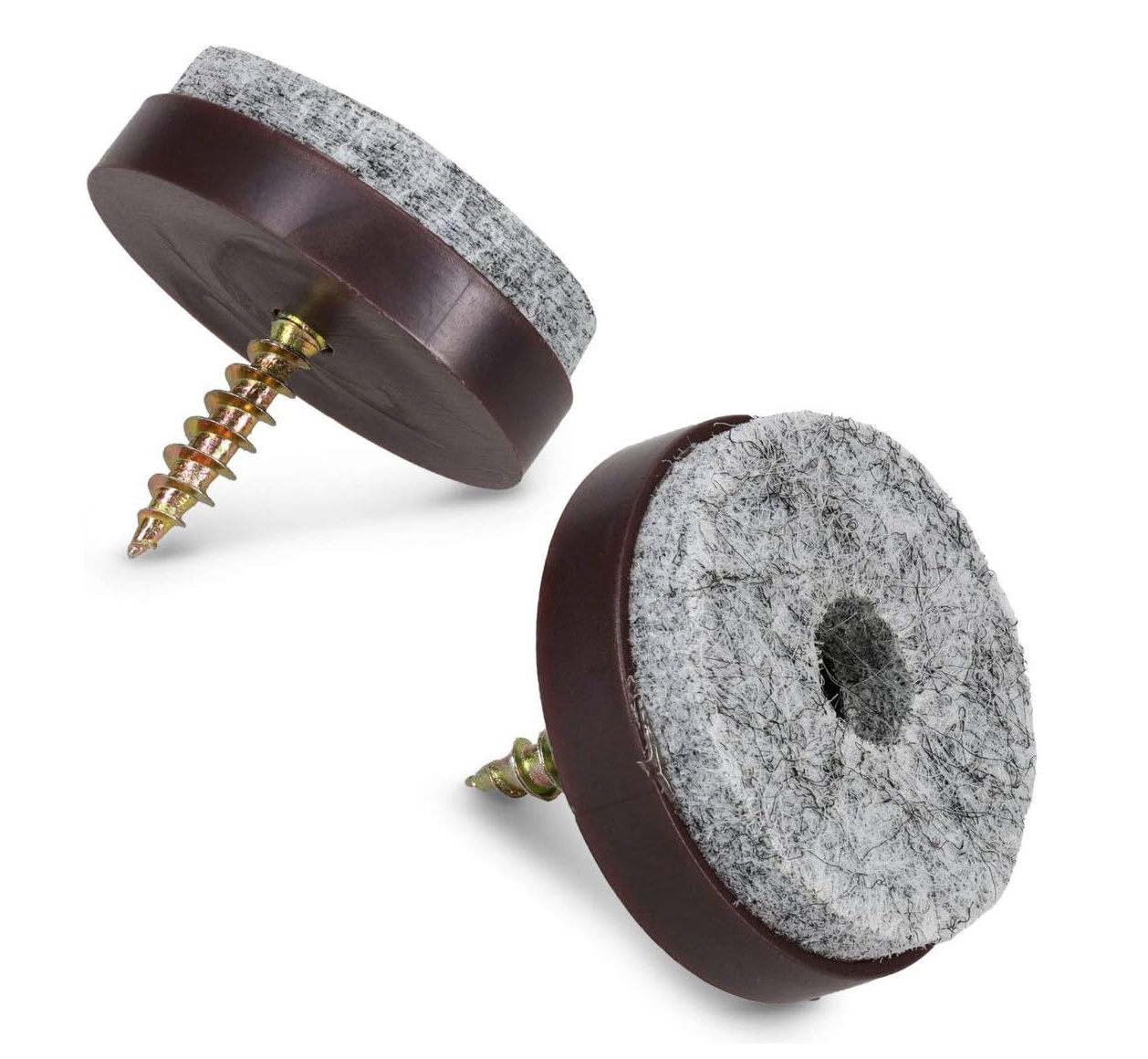 Protectores de fieltro con tornillo diseñados para proteger pisos y facilitar el desplazamiento de muebles. Ideales para sillas, mesas, sofás y muebles de madera. Su fijación mediante tornillo proporciona mayor estabilidad y durabilidad que los protectores adhesivos convencionales.
