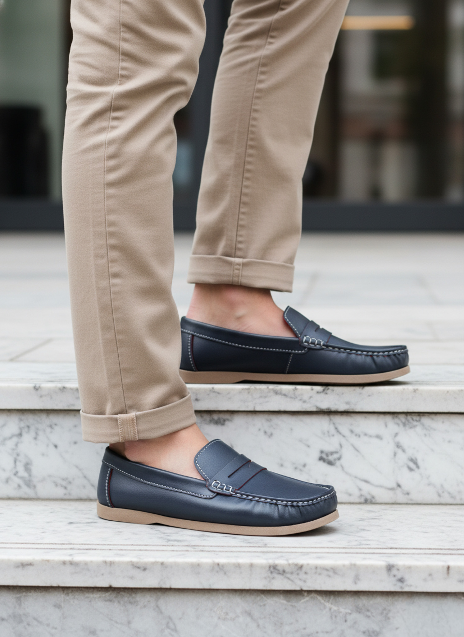 Estos apaches son una excelente opción para combinar con pantalones tipo chino, jeans o incluso bermudas, elevando cualquier look con un aire sofisticado y relajado al mismo tiempo.