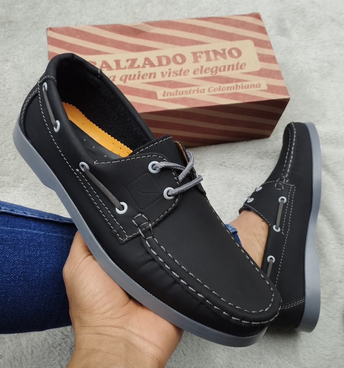 Calzado para caballero fabricado en Colombia en basecuero sintético totalmente cosido y pegado para mayor durabilidad en suela PVC