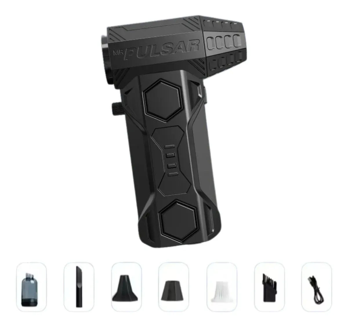 Este mini soplador turbo portátil ofrece potencia profesional en la palma de tu mano. Con un motor sin escobillas que alcanza hasta 130000 RPM, es ideal para limpiezas rápidas, secado exprés y mantenimiento de dispositivos electrónicos, automóviles y espacios reducidos. Características principales: – Motor sin escobillas de alta velocidad, hasta 130000 RPM, que genera un flujo de aire constante y potente. – Diseño compacto y liviano, con un peso aproximado de 250 a 300 gramos. – Control de velocidad en tres niveles para adaptarse a distintas tareas. – Batería recargable USB tipo C de 5V, con autonomía de varios minutos a velocidad máxima. – Construcción resistente con turbina metálica, boquilla presurizada y rodamientos de alta calidad. Usos recomendados: – Limpieza de teclados, laptops, cámaras y componentes electrónicos. – Secado rápido de autos, motos, calzado o piezas pequeñas. – Avivar brasas en parrillas o fogatas. – Ideal para talleres, estudios, oficinas o uso doméstico. Beneficios: – Alto rendimiento sin necesidad de compresores grandes. – Portátil, eficiente y seguro para el uso frecuente. – Sustituye aerosoles desechables y ayuda al cuidado del medio ambiente. – Precisión y eficacia en tareas de limpieza detallada.