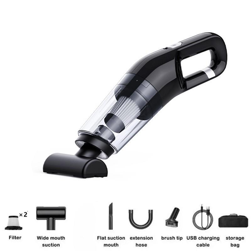 aspiradora de mano portátil para coche, disponible en blanco y negro. Estas aspiradoras están diseñadas para la limpieza de vehículos, pero también pueden ser efectivas en casa.