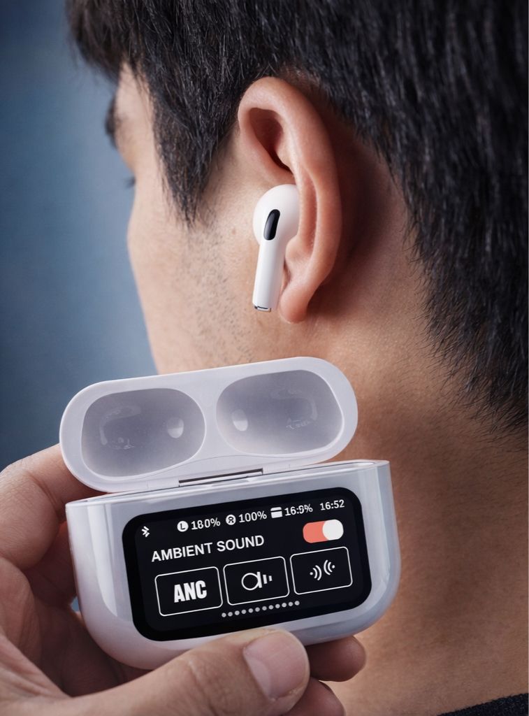 Su estuche cuenta con una pantalla digital que permite visualizar el estado de la batería, controlar funciones como modo ambiente, cancelación de ruido (ANC) y otras opciones de audio, brindando mayor control directamente desde el estuche. Además, su diseño ergonómico se adapta cómodamente al oído, permitiendo usarlos durante largas horas sin molestias.