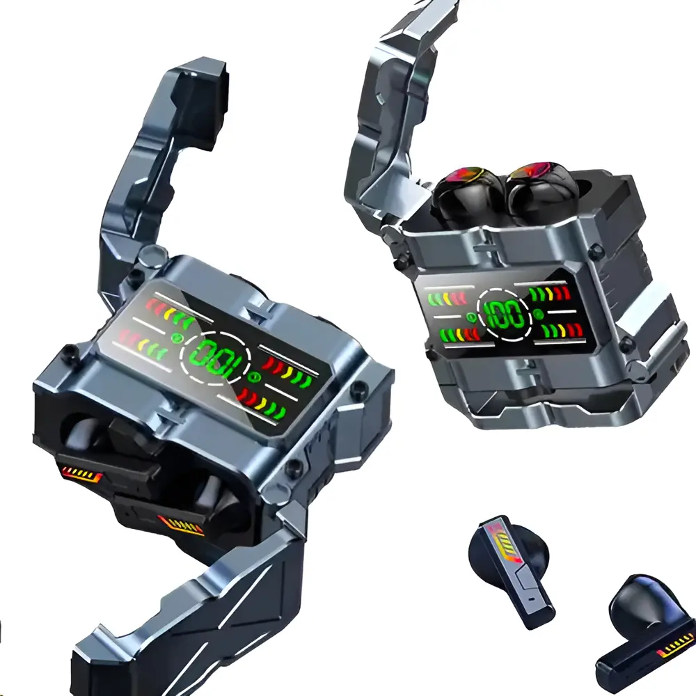 Sonido potente y diseño futurista 🎮🔥 con pantalla digital de batería. Conexión Bluetooth estable y estuche de carga portátil 🔋. Ideales para gaming, música y uso diario 🚀✨.