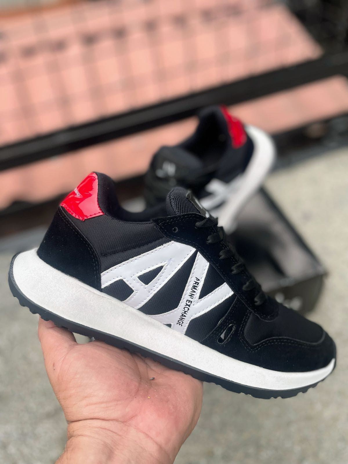 ! Eleva tu estilo con los deportivos casuales Armani! diseñados para el hombre moderno que no sacrifica comodidad por elegancia. ! descubre la fusion perfecta de moda y confort! ! diseñadas con materiales de primera calidad como las lonas transpirables y acolchadas permitiendo una suavidad extrema en su pi, asociado con materiales tipo cuero gamuzados dando un toque perfecto a tu estilo!!