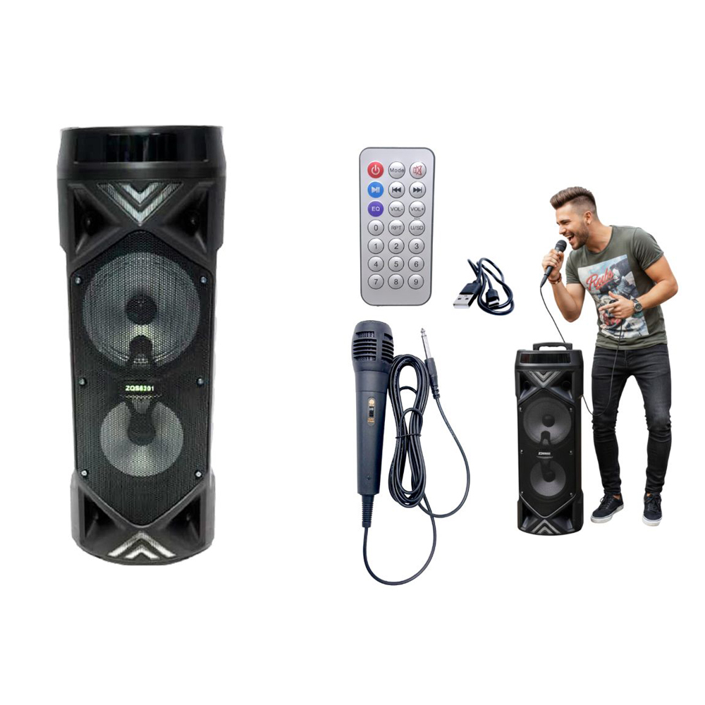 Título Sugerido: Bafle de Torre Potente 56cm - Doble Parlante con Luces LED y Micrófono - Sistema de Sonido Profesional - Despacho Inmediato