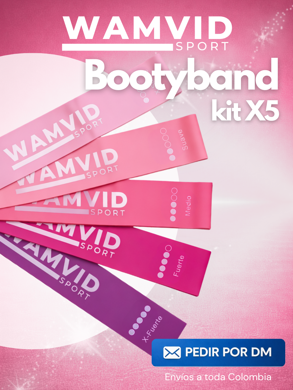 Set de Bandas Elásticas de Resistencia x5 – Entrenamiento color premium ROSADO / Fitness