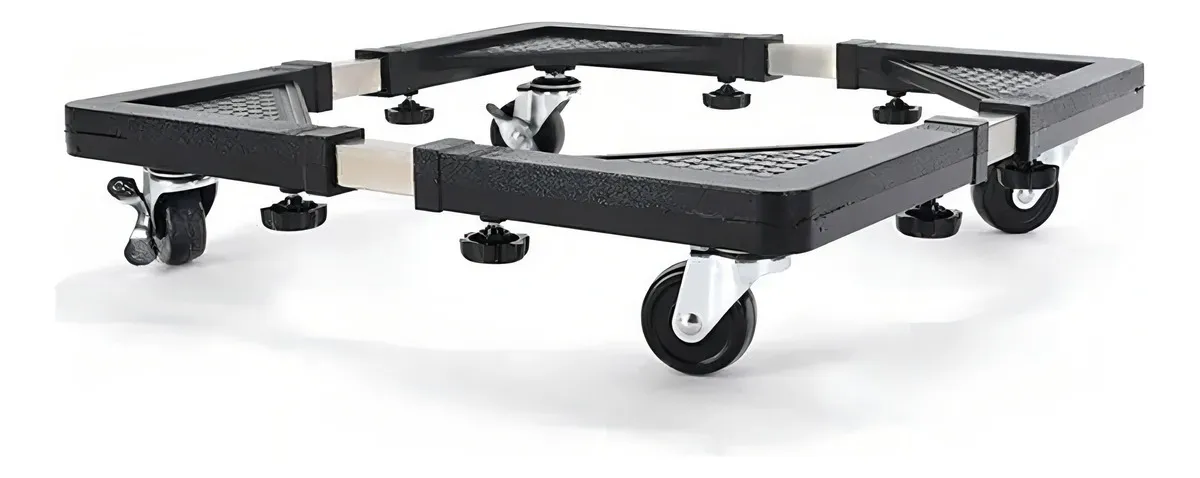 Base Soporte Móvil Ajustable para Refrigerador y Lavadora Amplia gama de aplicaciones: Este producto es ideal para colocar debajo de electrodomésticos como frigoríficos, lavadoras y secadoras, facilitando la movilidad y la maniobrabilidad al recoger y transportar objetos pesados. Es perfecto para evitar la oxidación debajo de estos aparatos y soluciona el problema de no poder moverlos para su limpieza durante largos periodos. Fácil de montar: Se ensambla en 3 minutos siguiendo las instrucciones. Incluye: 4 ruedas que giran 360°, 4 soportes de esquina, 4 postes de acero inoxidable y 18 tornillos para su fijación y 8 tacos. Conveniente ajuste de tamaño: El producto se ajusta de 40cm a 60cm, permitiendo mover muebles y aparatos de diferentes tamaños sin dificultad. Ruedas flexibles de 360° en la base: Cuatro ruedas giratorias de 360° facilitan el movimiento del aparato para diferentes fines y dos de ellas tienen frenos de bloqueo para mantener el aparato en la posición adecuada. Materiales y diseño de calidad: Fabricado con plástico de alta calidad, no tóxico y respetuoso con el medio ambiente + acero inoxidable con agujeros de seguridad precisos en las poleas para una colocación segura y un soporte de peso estable.