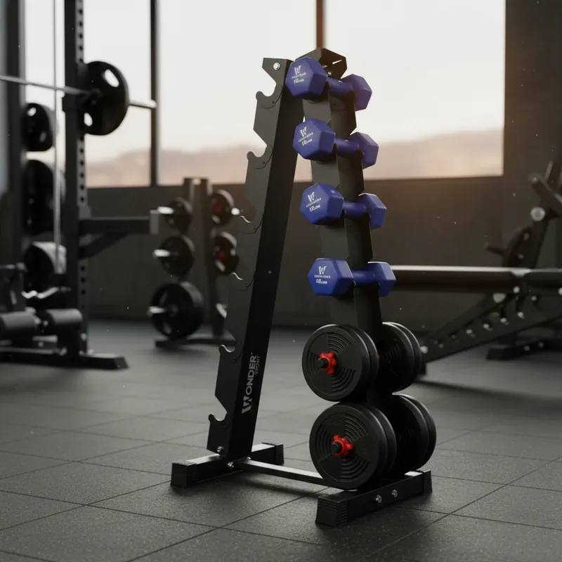 BASE SOPORTE ORGANIZADOR PARA PESAS GRANDE PARA TODO TIPO DE MANCUERNAS HEXAGONALES O DE DISCOS