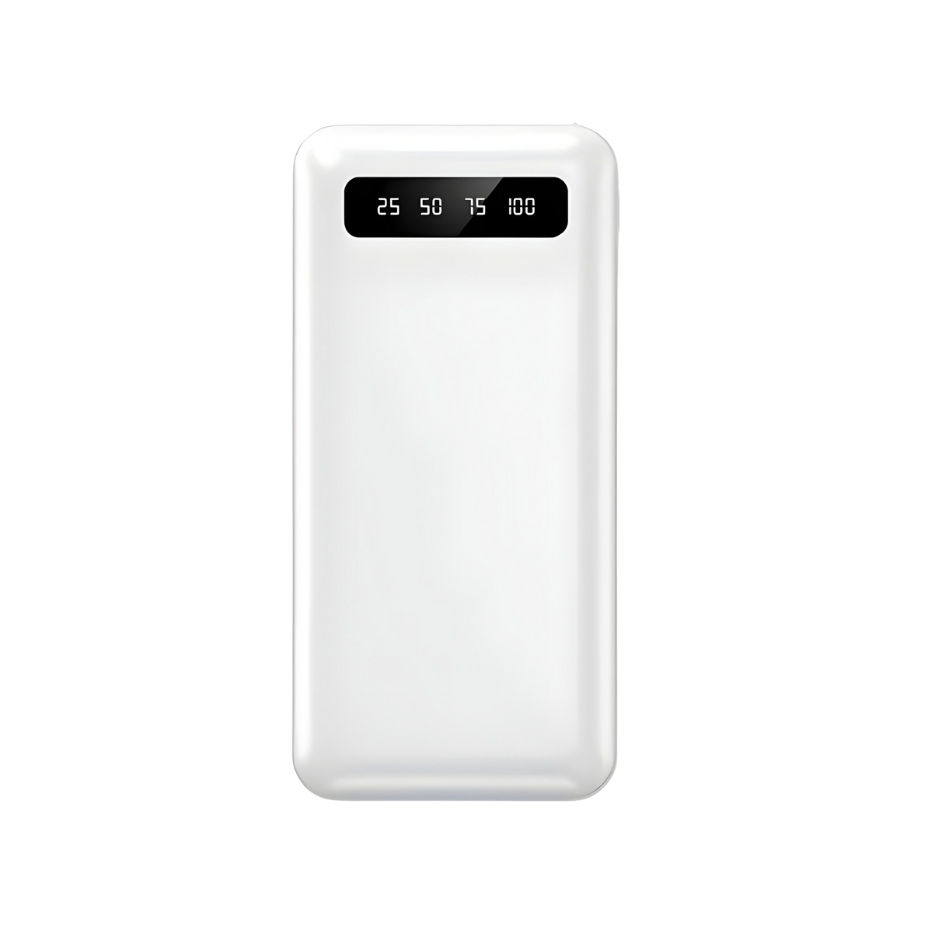 El cuerpo del producto presenta un diseño rectangular y compacto fabricado en material plástico rígido. Integra una batería interna de alta capacidad que se recarga previamente y luego transfiere energía a teléfonos móviles, audífonos inalámbricos, relojes inteligentes u otros dispositivos compatibles con carga USB.