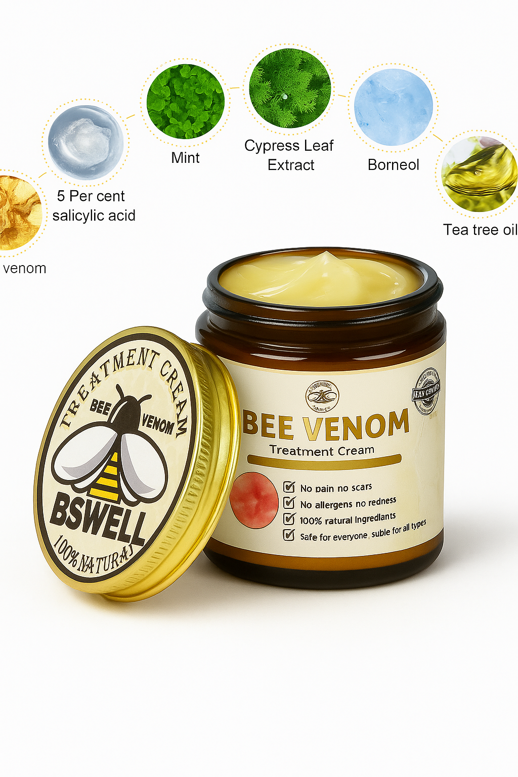 Bee Venom Treatment Cream es una crema tópica que utiliza veneno de abeja como ingrediente activo para estimular la regeneración de la piel, reducir cicatrices, y mejorar afecciones dérmicas sin provocar dolor ni efectos secundarios visibles.