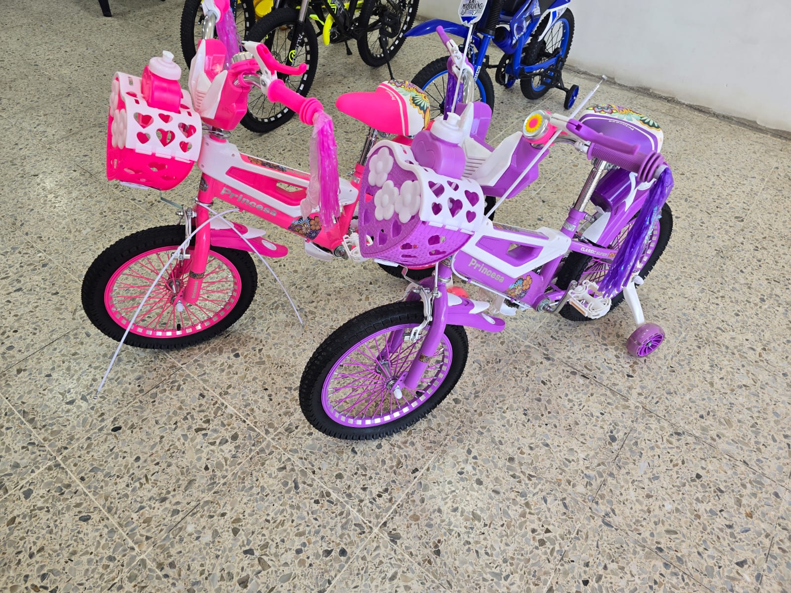 Hermosa bicicleta infantil diseñada especialmente para niñas, con colores llamativos y detalles tipo princesa, ideal para aprender y divertirse al mismo tiempo.