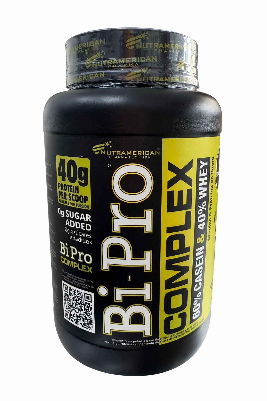 Bi-Pro Complex 2.1 Libra (935gr) 60% Caseína & 40% Whey Porciones por envase 17 40gr Proteina por scoop 0gr azucar añadidos sabor vainilla