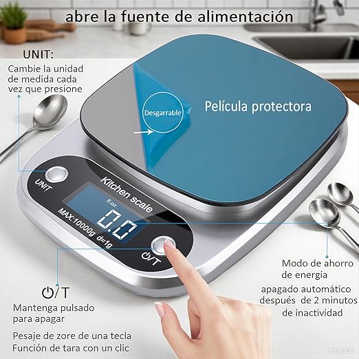 Sensores de alta precisión: Esta báscula está equipada con un sensor de gravedad de alta sensibilidad y un amplio rango, la capacidad máxima es de 10000 g, la capacidad mínima es de 1 gy la división de escala es de 1 g. La iluminación de fondo LCD grande y la fuente grande son fáciles de leer incluso en un diseño oscuro, fácil de usar y simple.