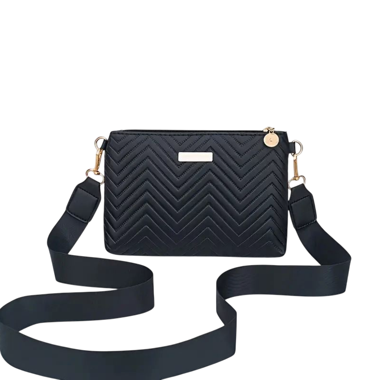 Este bolso elegante y versátil es el complemento perfecto para elevar tu look sin esfuerzo. Su diseño con textura en líneas y herrajes dorados le da un estilo moderno y sofisticado que combina con cualquier outfit.
