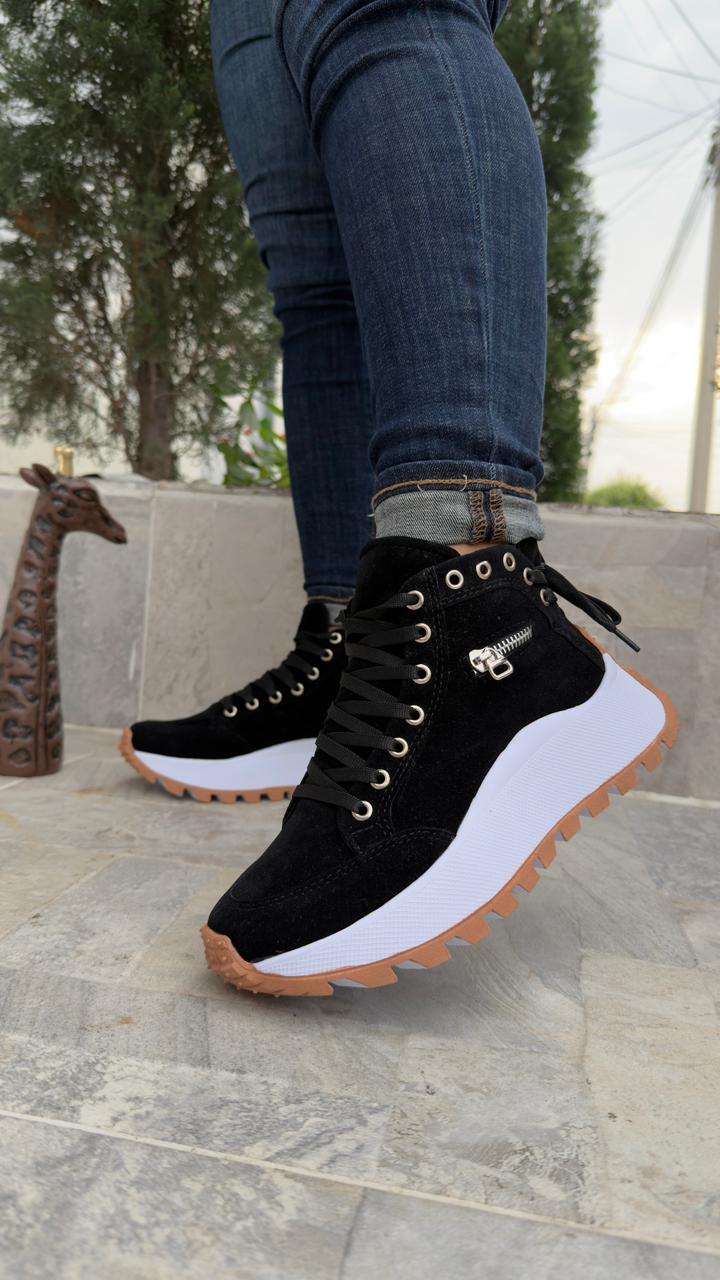 HERMOSA BOTA EN TENDENCIA, DISPONIBLE EN COLOR NEGRO Y MIEL, FABRICADA EN MATERIAL CARNAZA, CON CIERRE Y OJALETES DE LUJO, SUELA EN SPANSO, LIVIANO, PINTADO DE MANERA ARTESANAL, CON PLANTILLA CONFORT LA CUAL ES EN ESPUMA PARA MAYOR COMODIDAD.