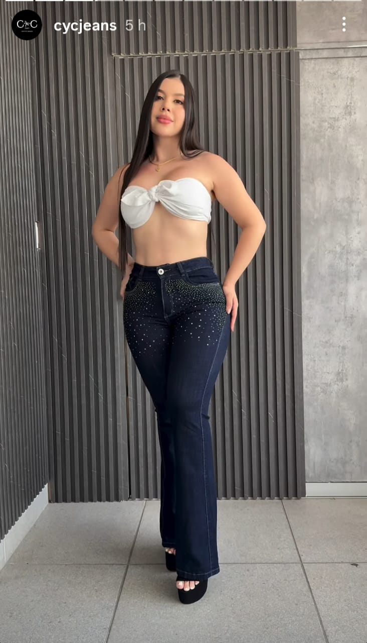 Jeans Bota Campana Color Azul Oscuro Con Piedreria De excelente Calidad, En tela Stress Con Super Elongacion Que Se Adapta Muy Bien Al Cuerpo Ref 4315 Disponible de la talla 8 A la Talla 16