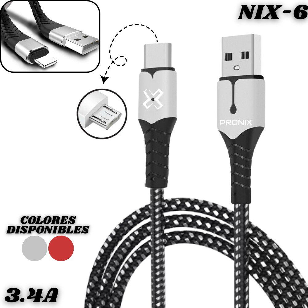 Cable Cargador Acordonado V8 Pronix Nix-6 3.4A 1 Metro 1 Metro Carga Rapida