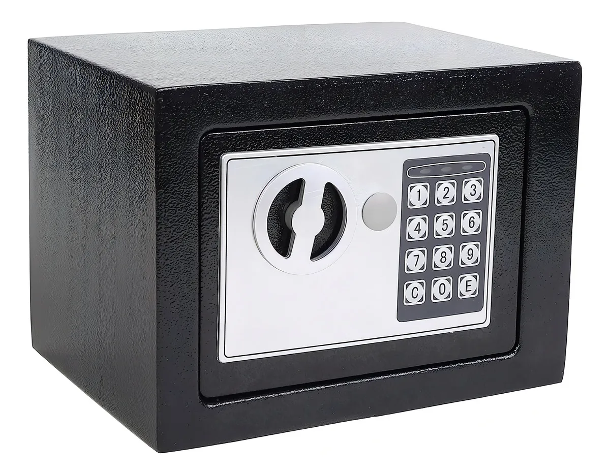 Caja fuerte de seguridad eléctrica con código digital y llave. CAJA 23 X 17 X 17 CM