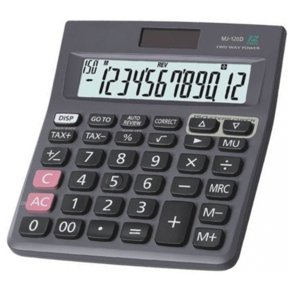 La calculadora de escritorio MJ-120D es una herramienta práctica y eficiente, ideal para oficinas, negocios, puntos de venta y uso en el hogar. Su estructura compacta de 14 X 12,3 X 3 centímetros permite ubicarla fácilmente sobre cualquier superficie de trabajo, brindando estabilidad y comodidad durante jornadas prolongadas. Fabricada en material plástico resistente, está pensada para un uso frecuente en entornos administrativos, contables o comerciales.