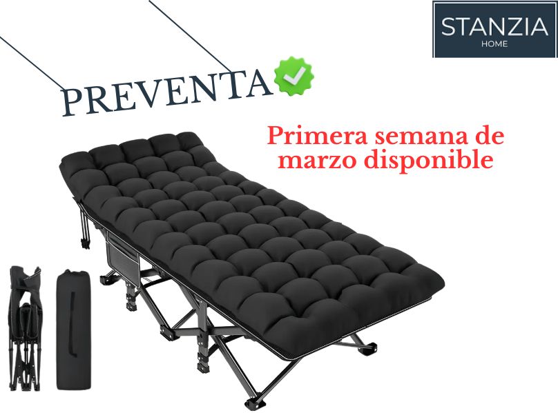 Nuestra Cama Plegable Negra Abollonada está diseñada para ofrecer comodidad, resistencia y practicidad en un solo producto. Ideal para camping, visitas en casa, emergencias o espacios reducidos.
