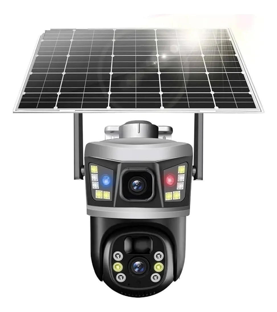 Las cámaras 3 lentes o “3 tiros” usan tres módulos de cámara en un solo dispositivo para cubrir ángulos amplios (360°) sin necesidad de instalar varias cámaras individuales. Esto mejora la vigilancia en puertas, patios, estacionamientos o áreas grandes con menos puntos ciegos y mejores detalles en la imagen.