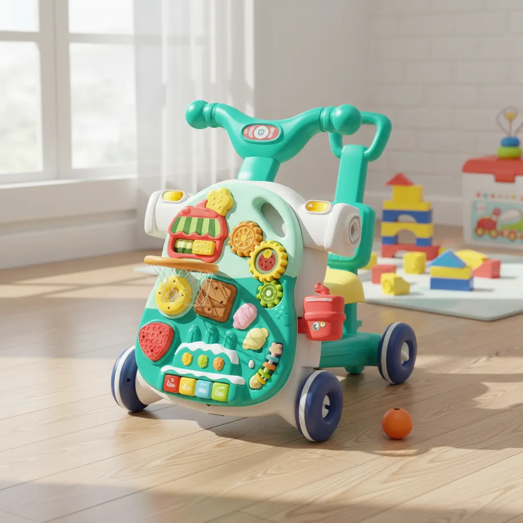 El Caminador 4 en 1 que crece con tu bebé. Funciona como andador, correpasillos, carrito de empuje y mesa de actividades interactiva. Diseñado para estimular el desarrollo motriz, sensorial y cognitivo mientras tu pequeño se divierte aprendiendo.