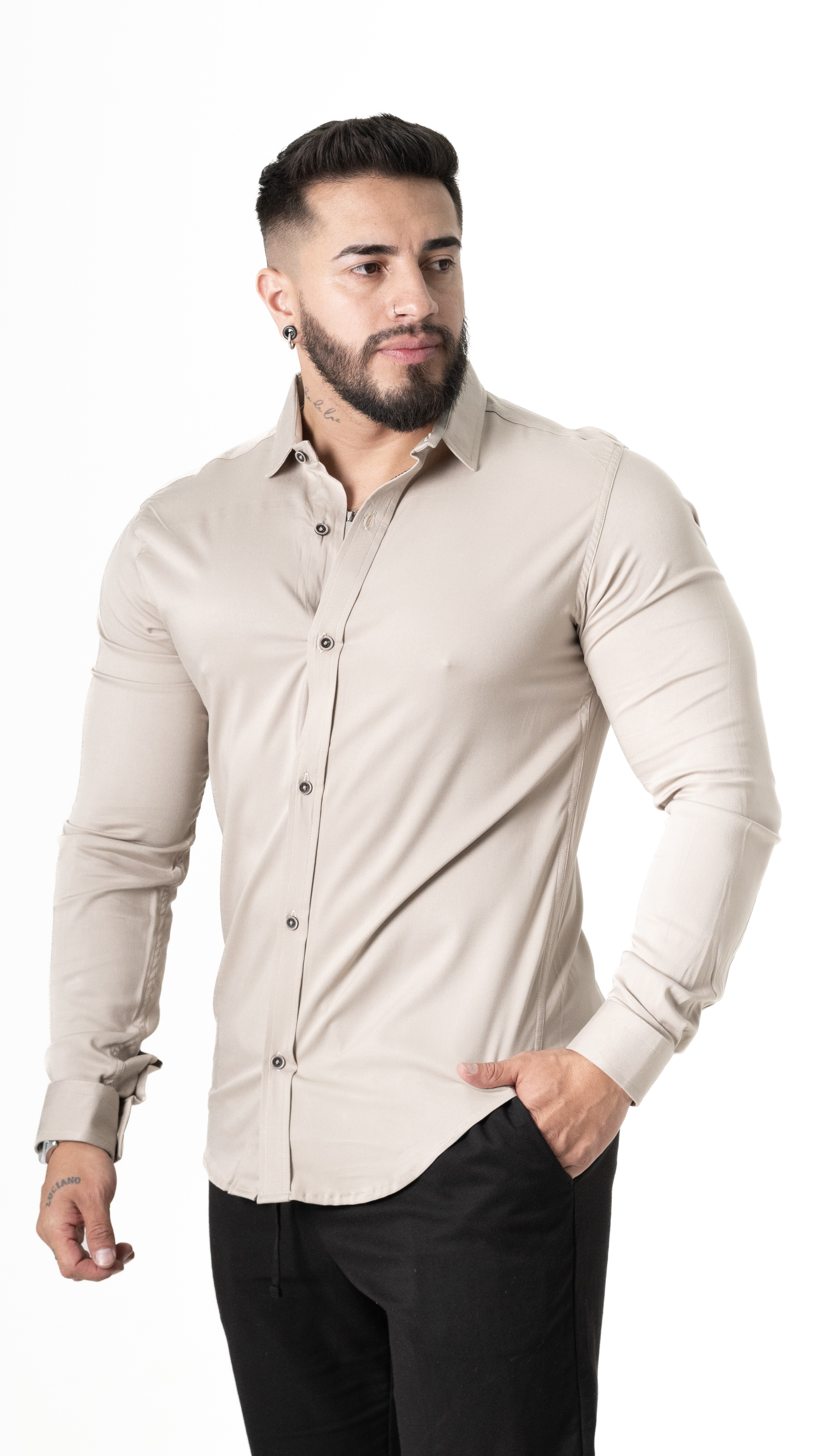 Camisa de diseño minimalista en tono neutro, ideal para un look elegante y moderno. Confeccionada en tela suave, fresca y con excelente ajuste al cuerpo, brinda comodidad durante todo el día sin perder estructura. Su horma estiliza la silueta y permite usarla tanto en ocasiones formales como en outfits casuales. Fácil de combinar con pantalón oscuro, jean o incluso blazer. Una prenda clave para quienes buscan verse bien sin complicarse.