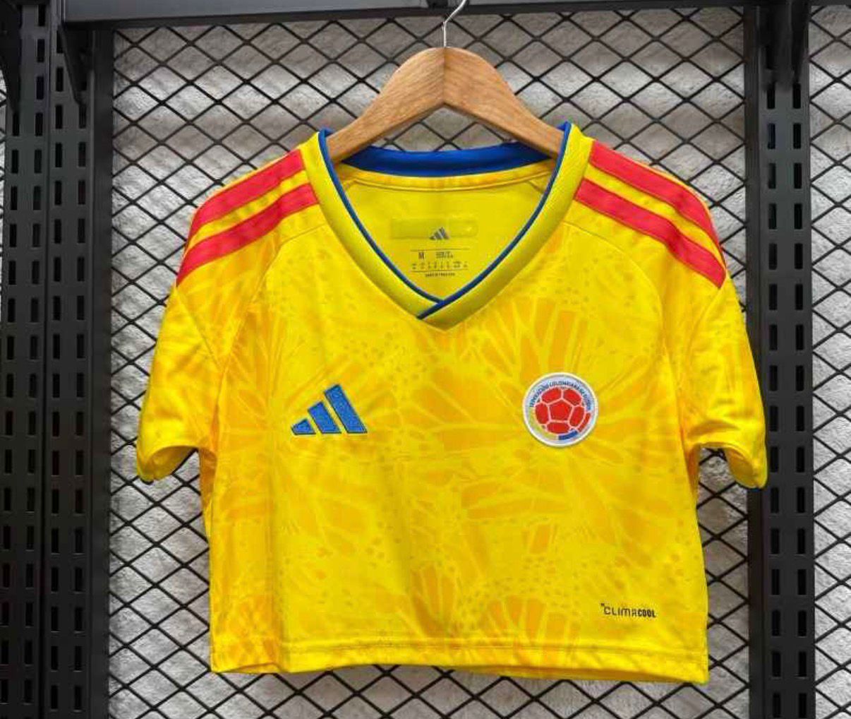 Camisa para dama estilo crop top de la Selección Colombia, diseñada para resaltar un look deportivo, moderno y femenino. Confeccionada en tela ligera y transpirable que brinda frescura, comodidad y excelente ajuste al cuerpo. Presenta el tradicional color amarillo vibrante con detalles en rojo y azul en los hombros, cuello en V y acabados de alta calidad.