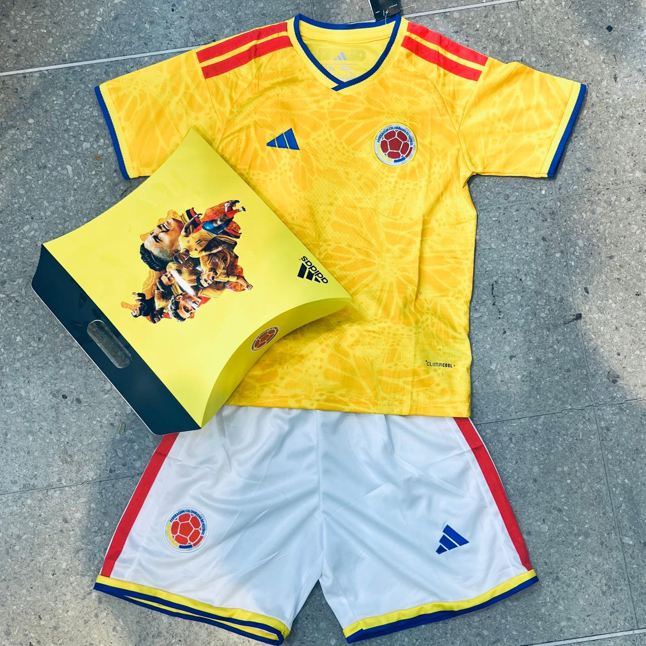 camisa bordada adidas y escudo mejor calidad mas caja camisa y pantaloneta de colombia mundial 2026 dama niño caballero