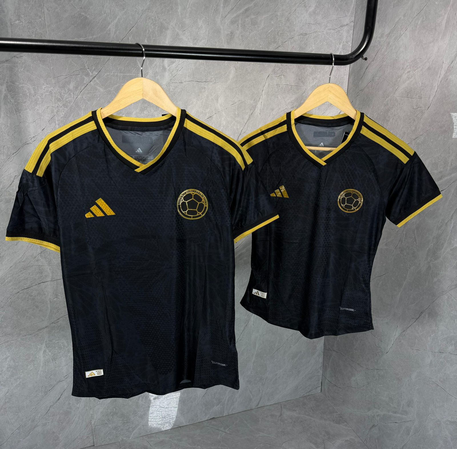 CAMISETA NEGRA CON FRANJAS DORADAS