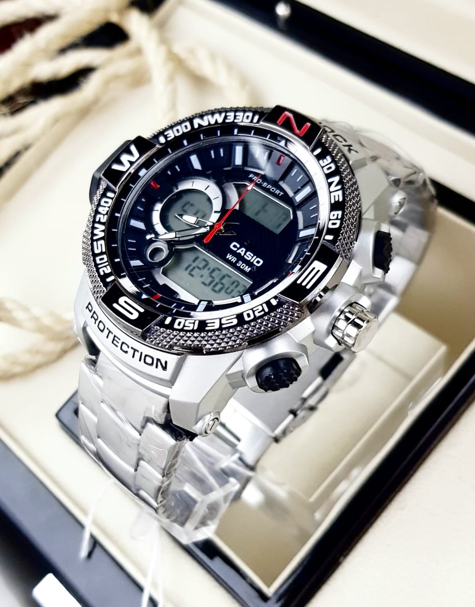 Reloj Gama Alta Con Múltiples Funciones: Doble Hora, Fecha, Cronómetro, Alarma Y Luz; Pulso Acerado. Totalmente contramarcado. Ultima colección.