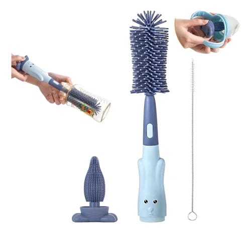 kit de limpieza de botellas, incluye un limpiador de botellas de agua, dos cepillos flexibles de nailon para pajitas y un cepillo para tazas que proporcionan una limpieza de cobertura total para tu equipo de hidratación favorito. Apto para botellas de agua, vasos, botellas, tarros de cristal y botes aislantes. Cepillo de silicona para botellas con mango largo, fabricado con silicona suave apta para uso alimentario para un toque suave. Su cabezal de cepillado inferior compacto llega fácilmente a todos los rincones y protege las botellas de arañazos. Con el mango de diseño ergonómico, puedes limpiar las botellas de forma fácil y cómoda. Cerdas extralargas para una limpieza profunda. ¡