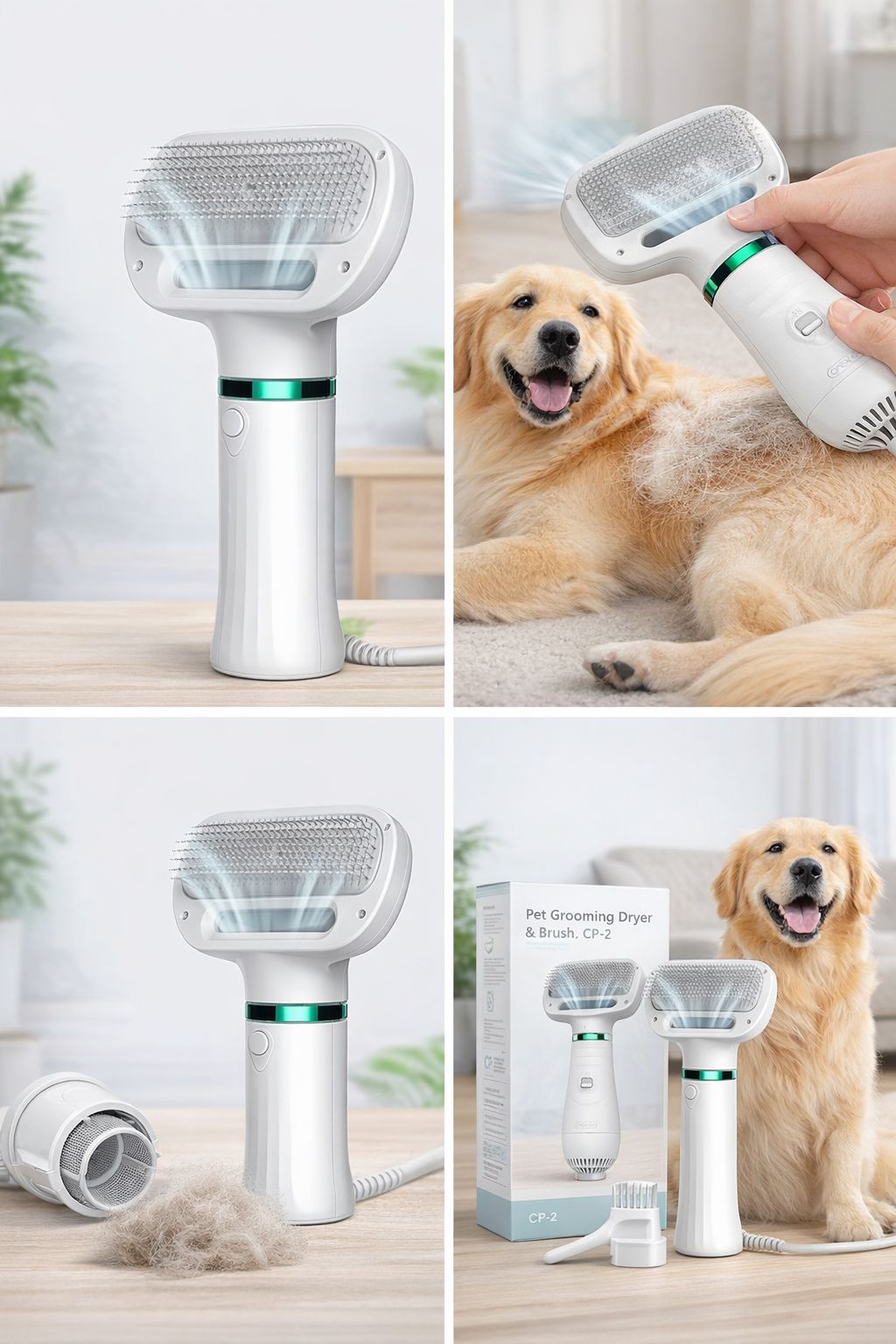 Práctico cepillo eléctrico que seca y peina el pelo de tu mascota al mismo tiempo, facilitando el cuidado después del baño. Su diseño ergonómico y ligero permite un uso cómodo mientras elimina el pelo suelto y ayuda a desenredar sin lastimar la piel de tu mascota.