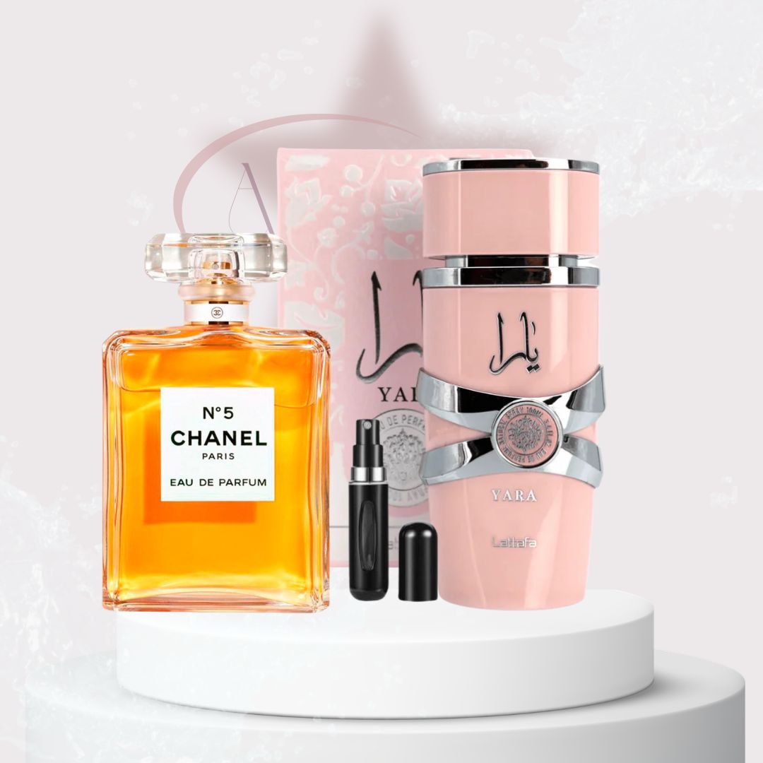 💥 COMBO EXCLUSIVO: Chanel 5 + Yara + Perfumero + Perfumero 🎁