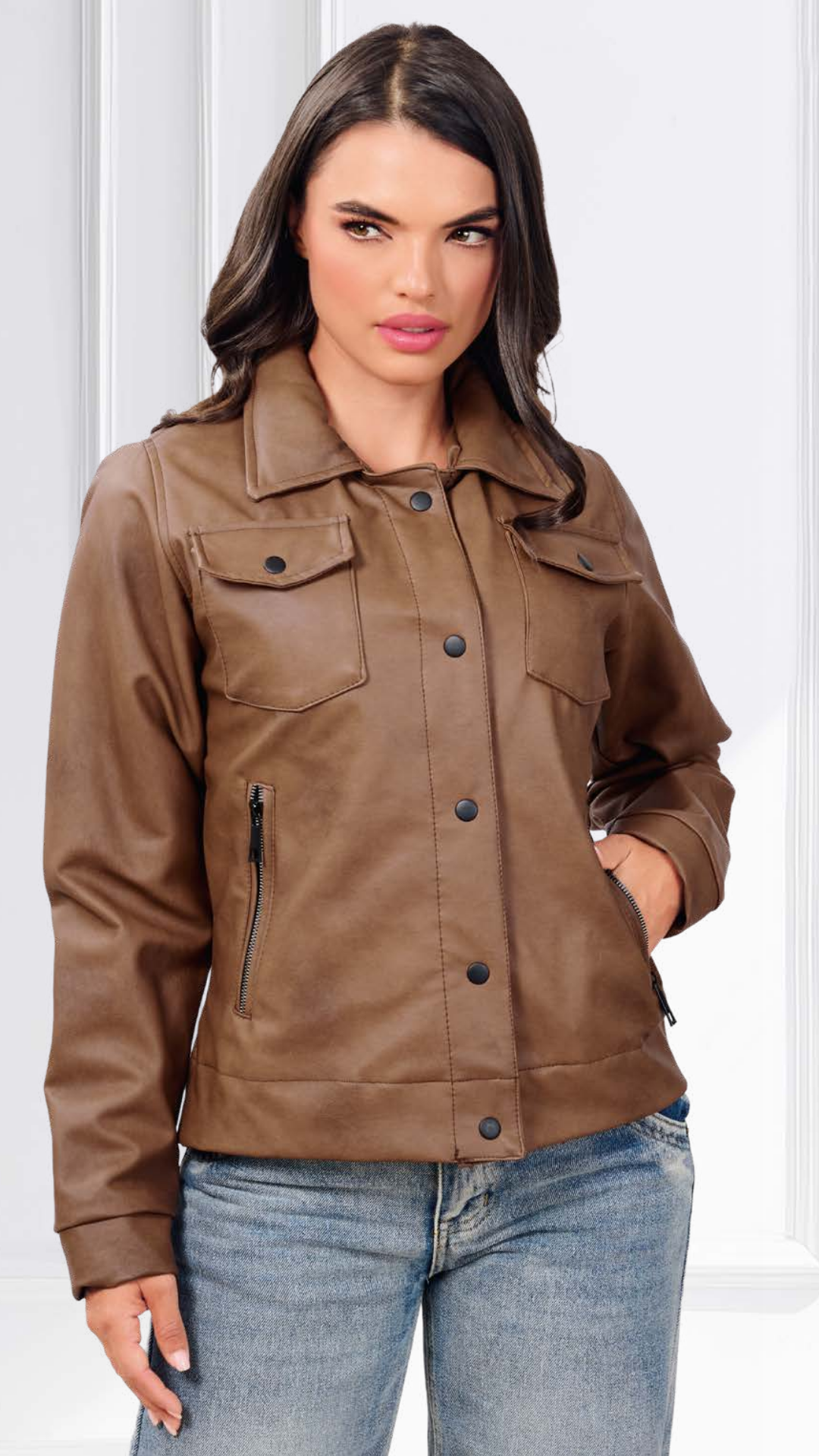 Eleva tu look con esta chaqueta de diseño estructurado, pensada para mujeres que buscan equilibrio entre elegancia, comodidad y versatilidad. Confeccionada en material tipo cuero de alta calidad (cuero tex), ofrece una textura suave al tacto y una apariencia sofisticada que se adapta tanto a outfits casuales como más formales.