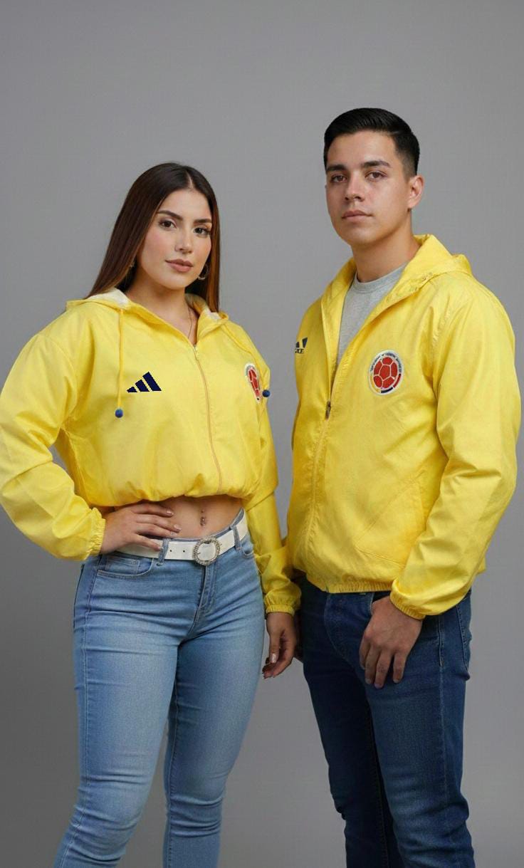 Esta nueva y estilizada chaqueta de la seleccion colombia, sale para dama y caballero en material rompevientos impermeable viene en talla sm y lxl color amarillo es strech y tiene muy buena horma