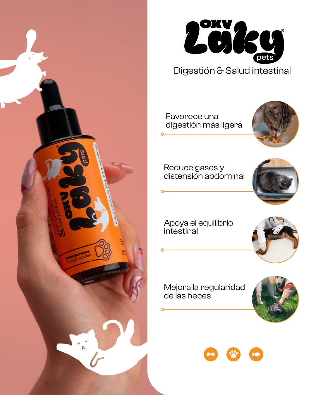 Tratamiento homeopático de uso veterinario formulado para apoyar la digestión y el equilibrio de la salud intestinal en perros y gatos. Su combinación de probióticos, enzimas digestivas, extractos naturales y componentes homeopáticos contribuye a mejorar el tránsito intestinal, reducir el malestar digestivo y favorecer una correcta absorción de nutrientes.