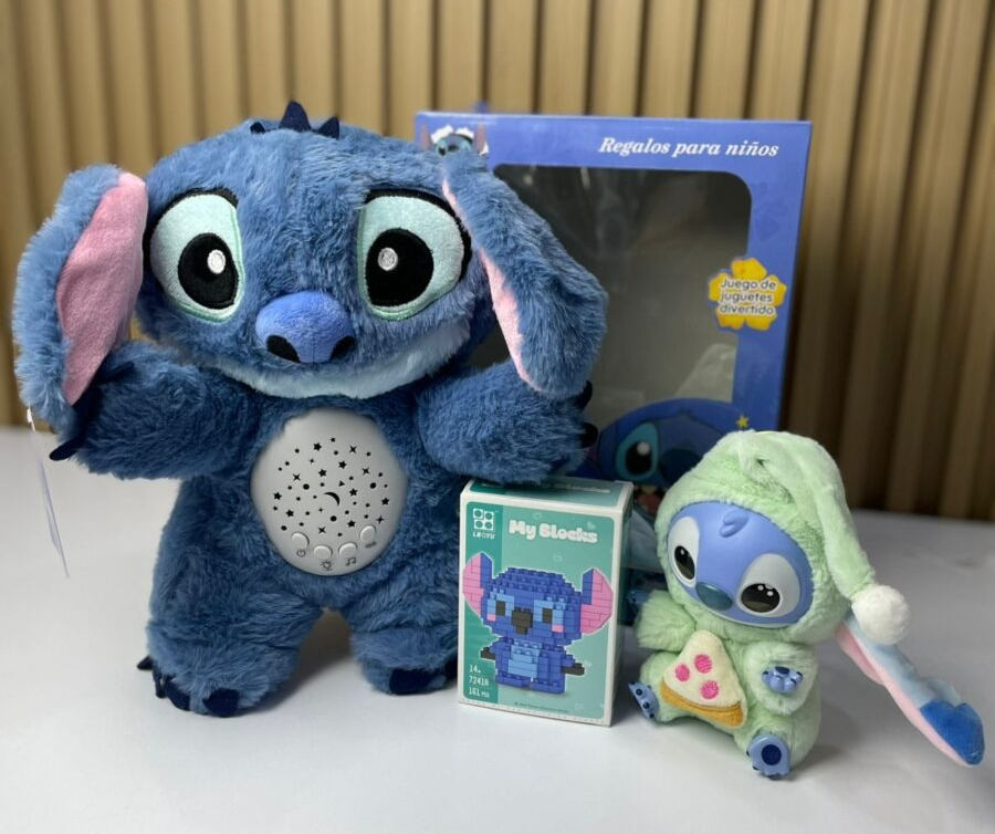El set Stitch Peluches 3 en 1 con Figura y Bloques Armables es un conjunto infantil interactivo que combina tres formatos de entretenimiento y colección: un peluche grande con funciones electrónicas, una figura coleccionable de Stitch en pijama y un set de bloques de construcción tipo mini ladrillos. Este producto está diseñado para estimular la creatividad, el juego simbólico y la relajación de los niños a partir de los 3 años, integrando diferentes tipos de interacción: táctil, visual y constructiva.