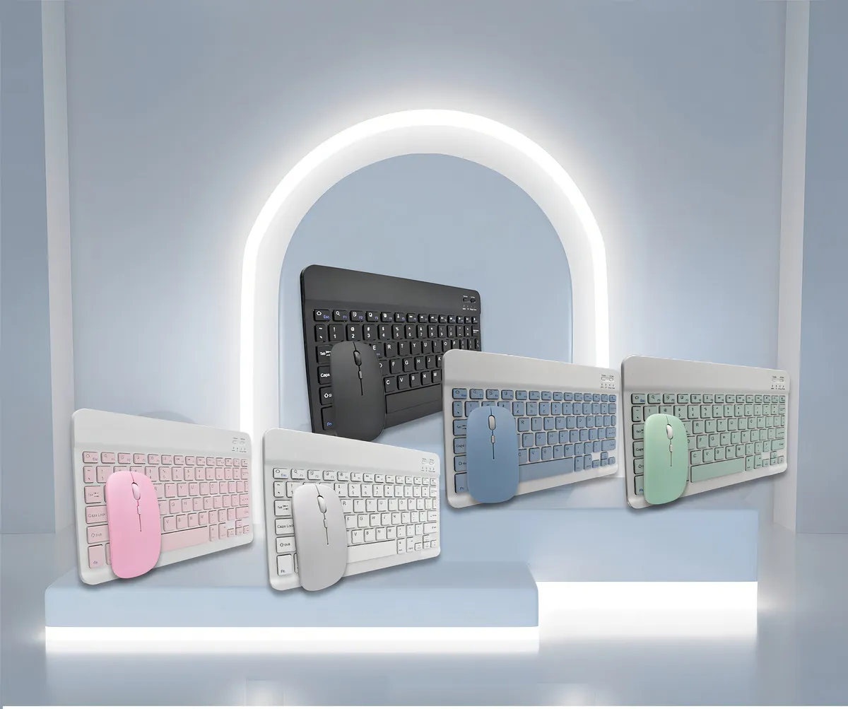 Combo Teclado Y Mouse Inalambricos De Colores | Recargable Color Del Teclado Rosa' es un conjunto de teclado y mouse inalámbricos de alta compatibilidad. Funciona con los cuatro principales sistemas operativos que admiten Bluetooth: iOS, Android, Mac OS y Windows. Es ideal para usar con iPads, iPhones y tabletas habilitadas para Bluetooth, así como computadoras portátiles y teléfonos móviles. El teclado es ultra delgado, ligero y portátil, diseñado para aquellos que necesitan un teclado portátil para trabajar o jugar, y es especialmente adecuado para viajes de negocios. Este teclado inalámbrico Bluetooth utiliza una batería de litio incorporada que se puede recargar fácilmente a través de un cable USB. La batería incorporada es increíblemente duradera, con un tiempo de espera de aproximadamente 6 meses entre cargas. Además, el teclado puede entrar automáticamente en modo de suspensión para ahorrar energía. La tecnología Bluetooth avanzada proporciona una conexión sin cables con un rango de funcionamiento de 10 metros. Para las computadoras de escritorio y portátiles sin función Bluetooth, se debe insertar un adaptador Bluetooth de terceros (no incluido) para instalar el controlador Bluetooth antes de usarlo. Para conectar el teclado, encienda el botón "encendido" en el teclado, mantenga presionada la tecla "conexión" en el teclado durante 2 segundos, encienda el dispositivo Bluetooth que necesita para conectarse, busque "Teclado Bluetooth 3.0" en "mi dispositivo" y haga clic en "conectado". El mouse se puede conectar de dos formas: en modo Bluetooth, encienda el botón 'encendido' en el mouse, luego abra el dispositivo Bluetooth para conectarse, busque 'BT mouse' en 'mi dispositivo' y luego haga clic en 'conectado'. En modo de conexión USB, encuentre el enchufe USB en la parte posterior del mouse, inserte el USB en el teclado y finalmente abra el "encendido".